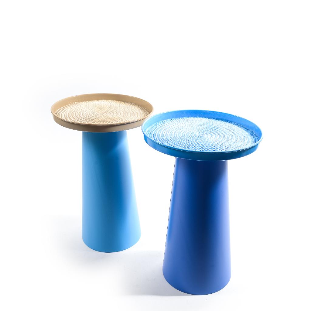 Tavolino tondo colorato in metallo verniciato per esterno e giardino