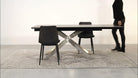 Il Tavolo allungabile Arzachel by Bizzotto è un tavolo di design allungabile con gambe shangaii in acciaio verniciato a polvere epossidica e top in bellissima ceramica spessore 5 mm con supporto in vetro temperato dalle calde tinte del marrone e tortora.