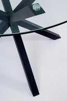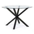 Tavolo "May" tondo con gambe, struttura nera, piano in vetro temperato da 10mm