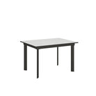 L'estensione del tavolo avviene in modo semplice e intuitivo: basta aprire la parte centrale del tavolo estraendo le sezioni aggiuntive, che possono essere fissate stabilmente per creare una superficie più ampia.
