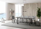 Quando non è allungato, il tavolo "Pavia" può essere posizionato contro una parete per l'appoggio di oggetti decorativi o come piano di lavoro aggiuntivo.