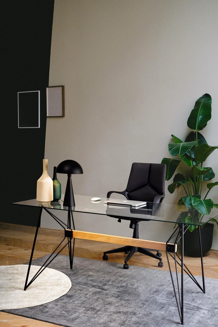 Il piano in vetro trasparente aggiunge leggerezza visiva e raffinatezza, creando un contrasto armonioso con la struttura in acciaio. Il vetro temperato è resistente agli urti e facile da pulire, assicurando durabilità e praticità per l'uso quotidiano. Il tavolo "Primary" è perfetto per chi cerca un arredo moderno, minimalista e al tempo stesso robusto.