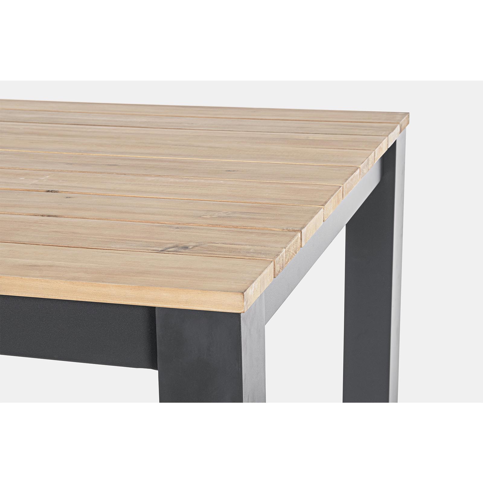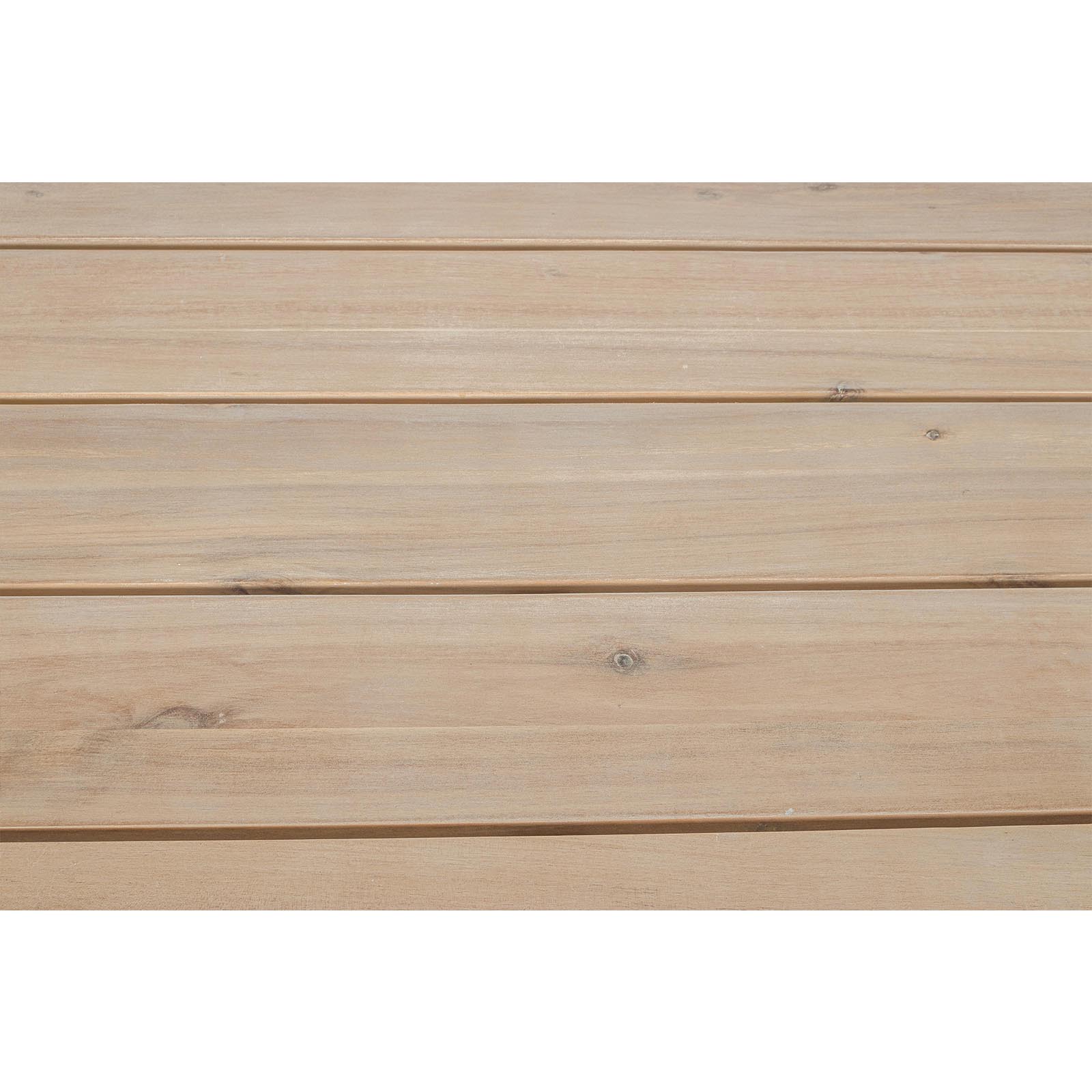 - Il tavolo è realizzato in acacia con finitura effetto teak a base di poliuretano.
