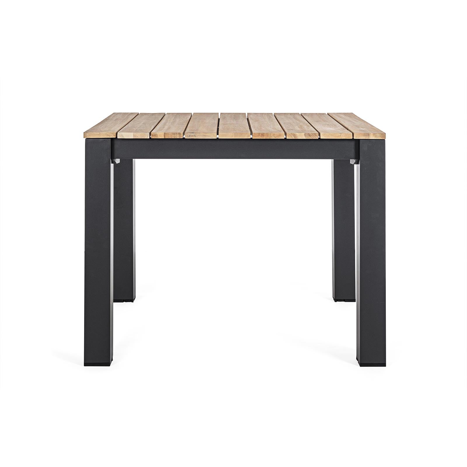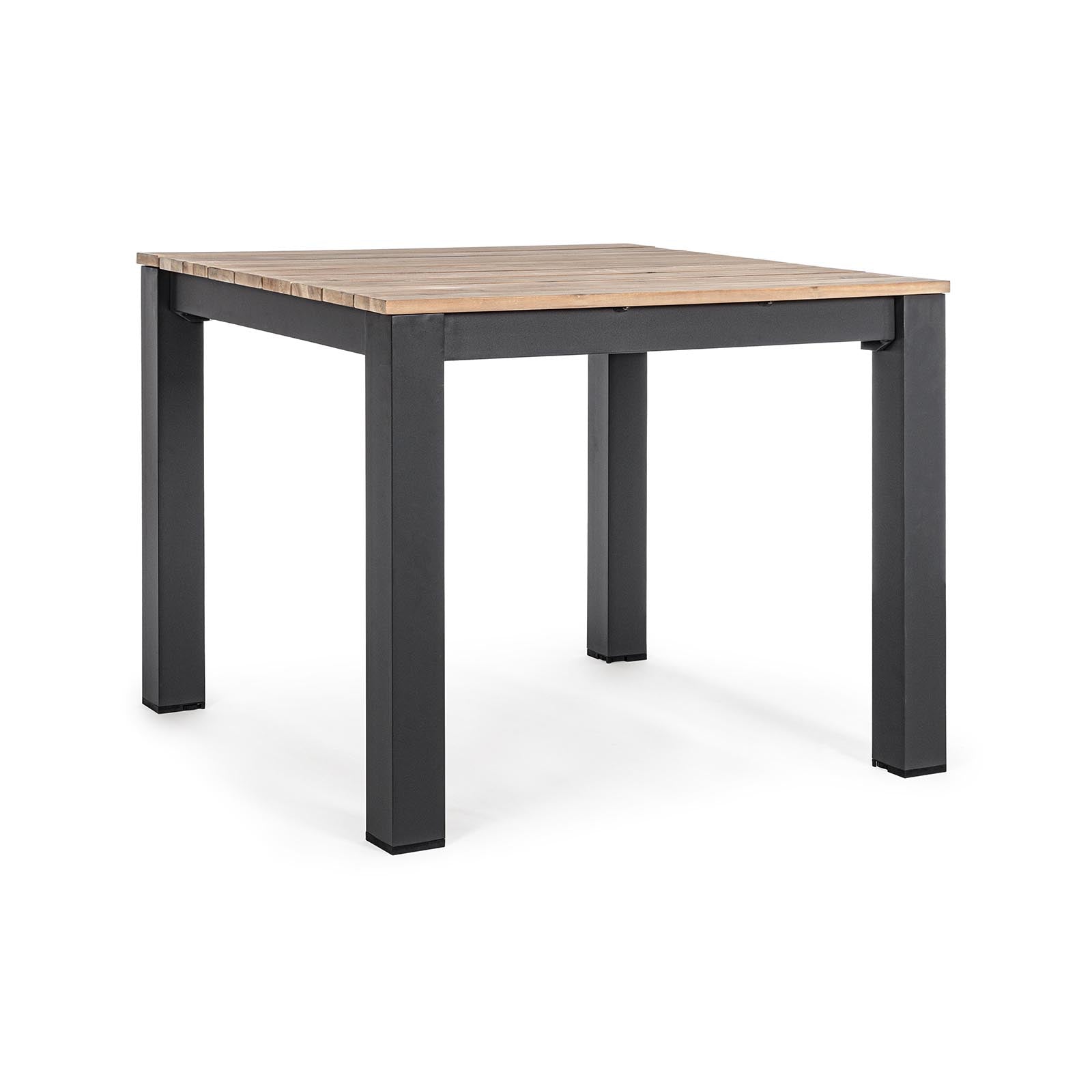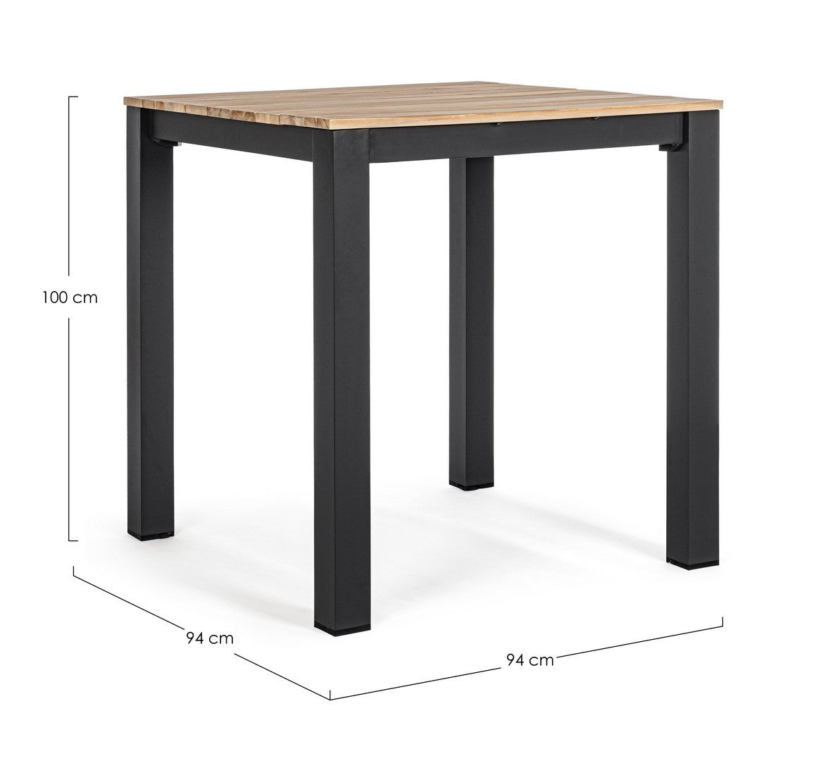 Tavolo quadrato moderno "Kailani" in alluminio verniciato nero e doghe in legno di acacia