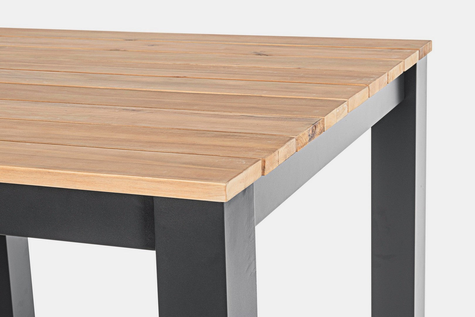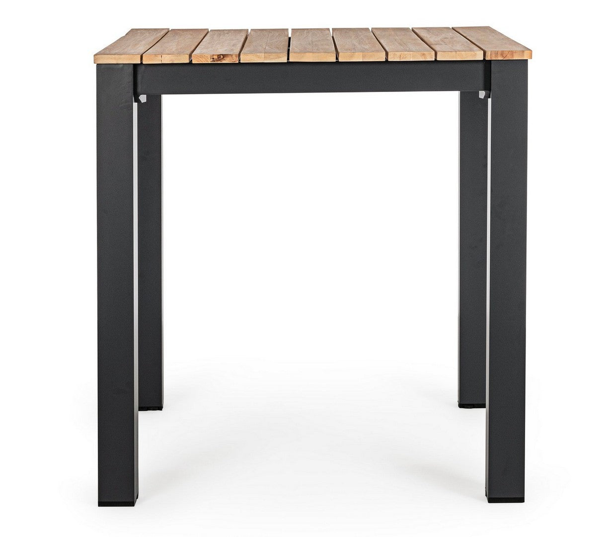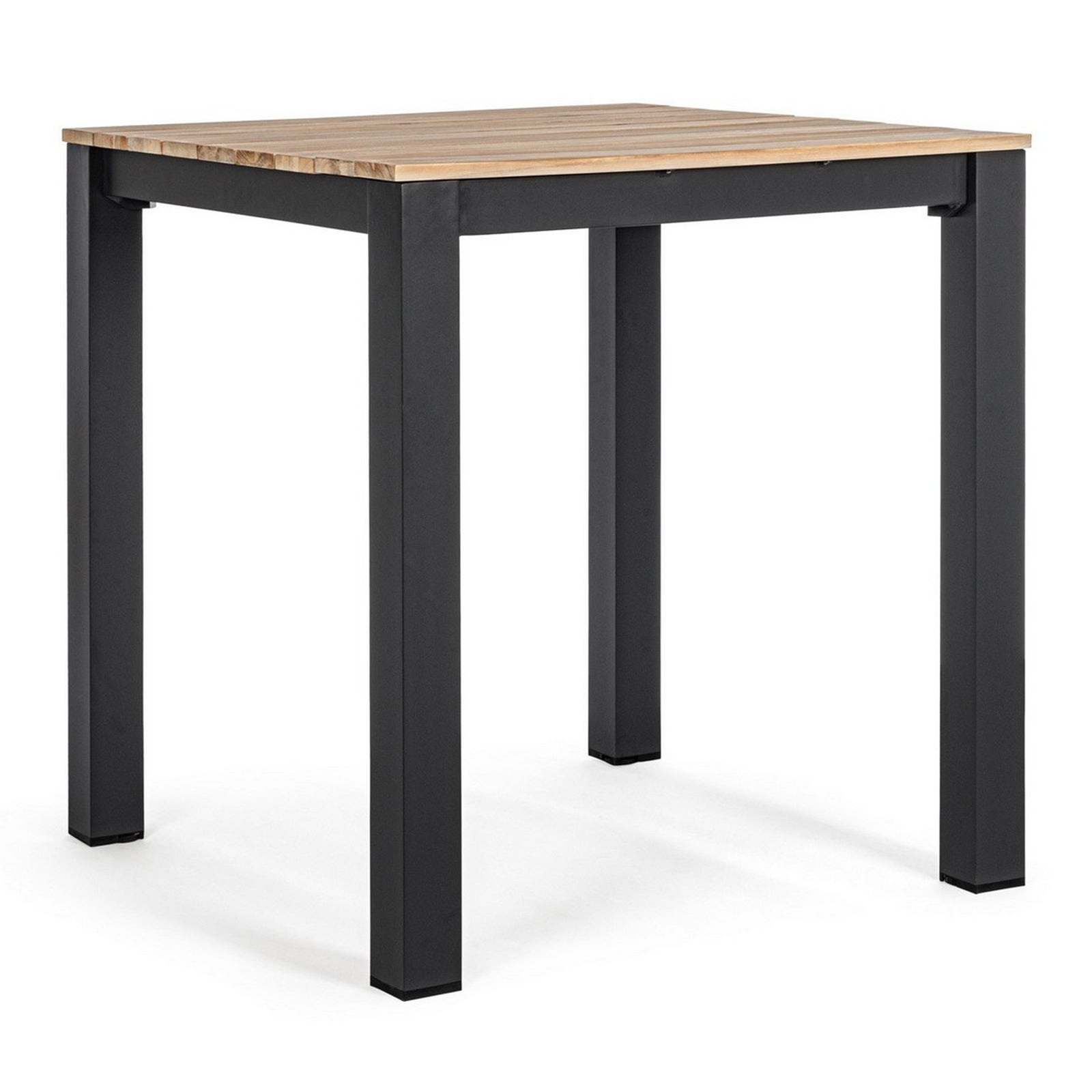 Tavolo quadrato moderno "Kailani" in alluminio verniciato nero e doghe in legno di acacia