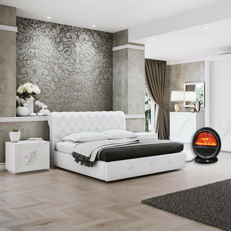 Termoventilatore elettrico da terra con fiamma finta e vetro temperato da 1500 W