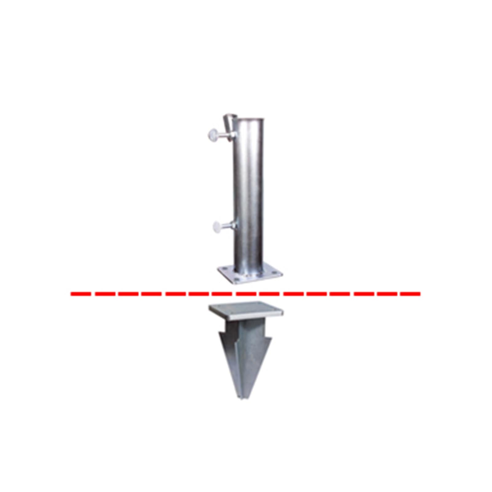 Base per fissaggio con punta da interrare in acciaio zincato con tubo per ombrelloni a palo centrale prodotti dalla ditta Scolaro Parasol.
