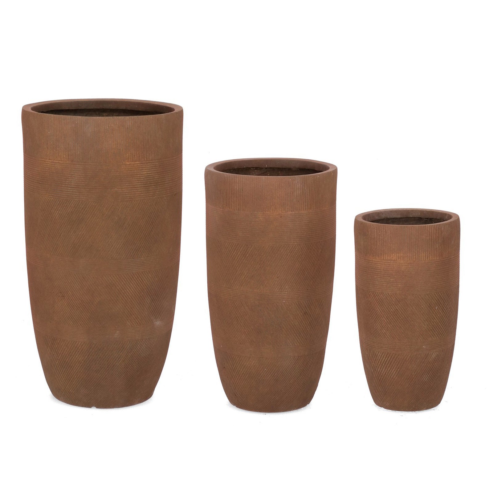 Vasi "Rigo" in fibra di argilla color rusty per fiori e piante da esterno set da 3