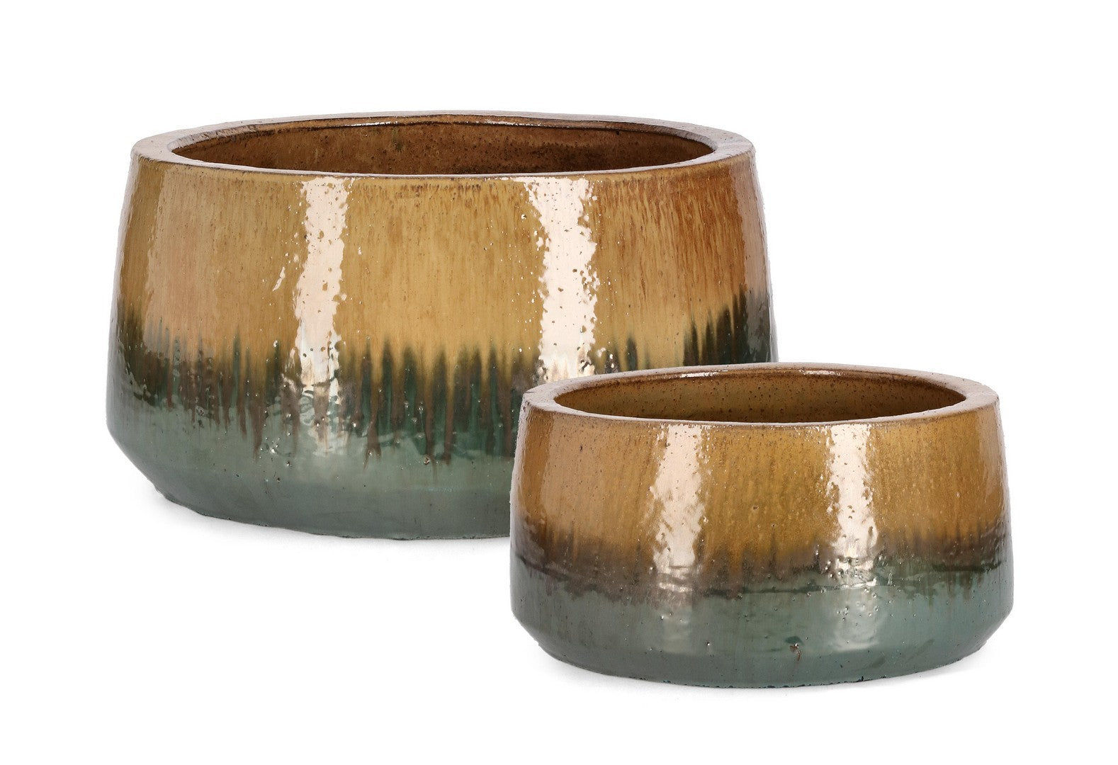 Vasi "Thran" struttura bassa in terracotta smaltata per esterno set da 2