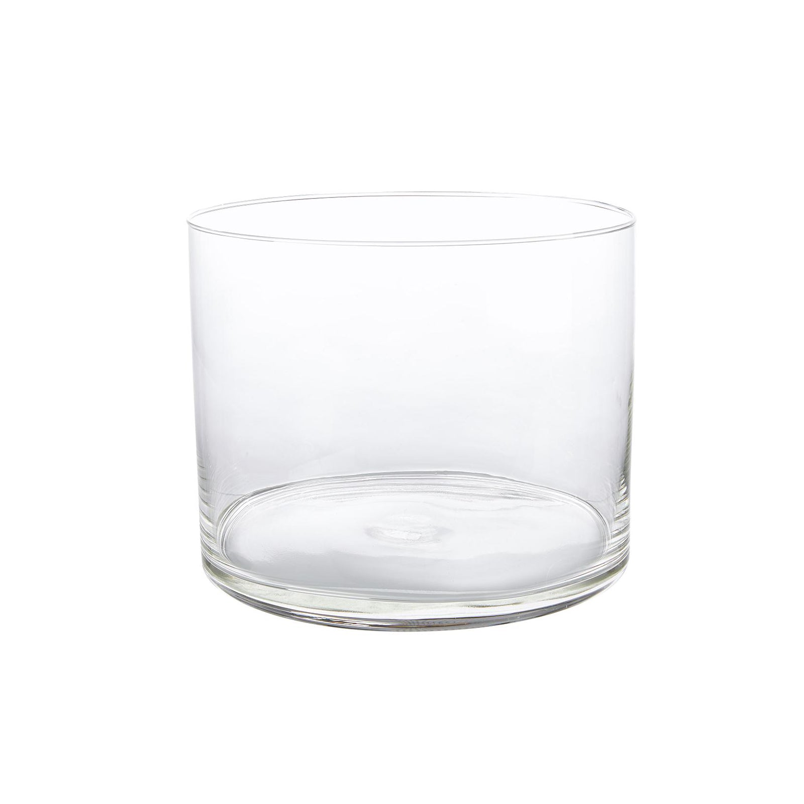 Vaso cilindrico in vetro trasparente per piante e fiori da giardino.
