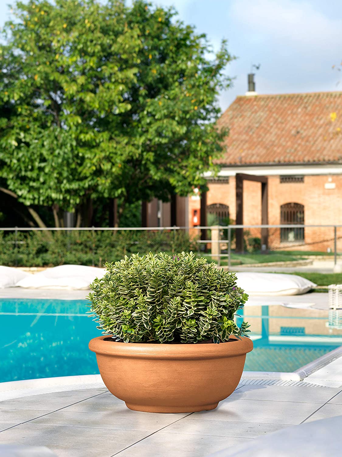 Questo vaso è utilizzabile senza problemi come vaso da terrazzo o da giardino in quanto è resistente ai raggi U.V. e quindi inalterabile nel colore.