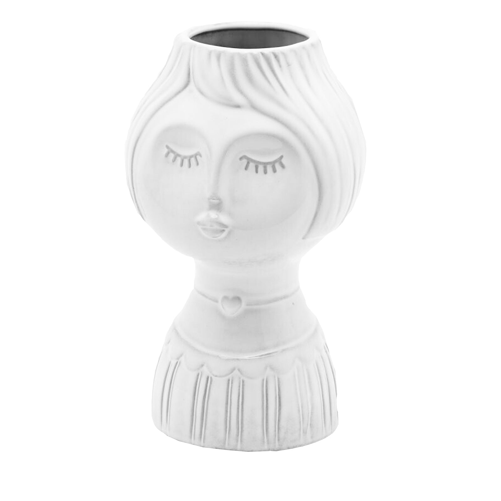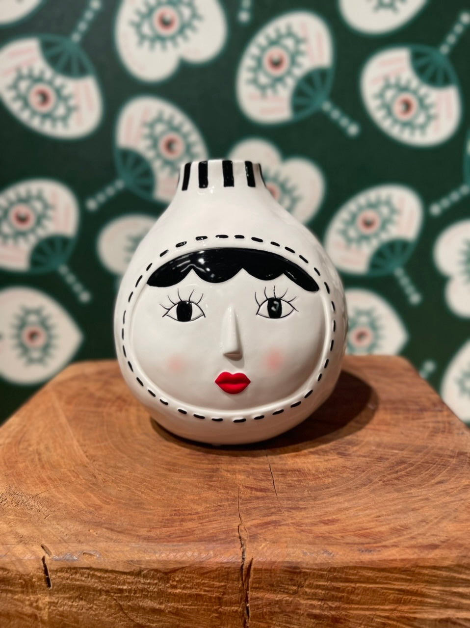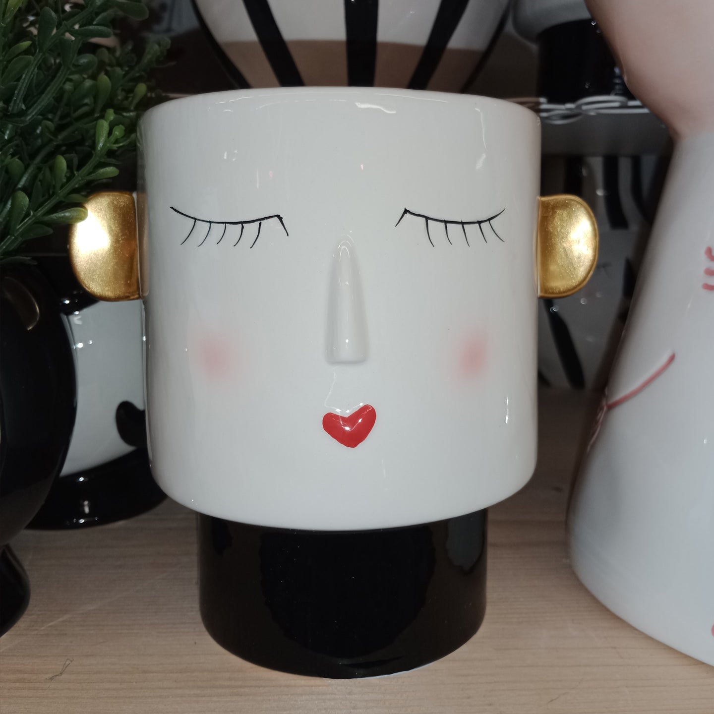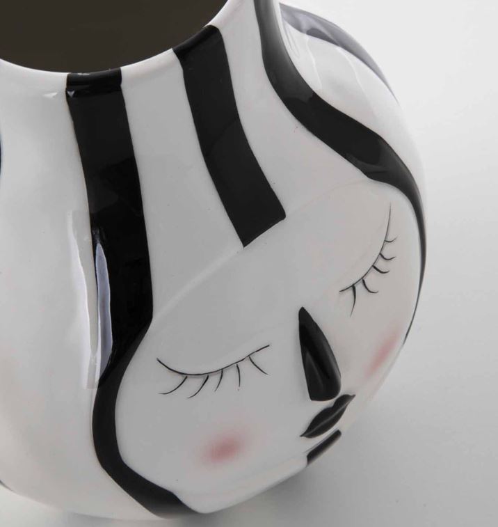 Vaso Faccia decorativa porta fiori o piante in ceramica volto donna h 19,4 cm