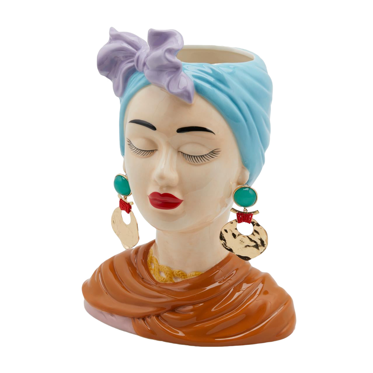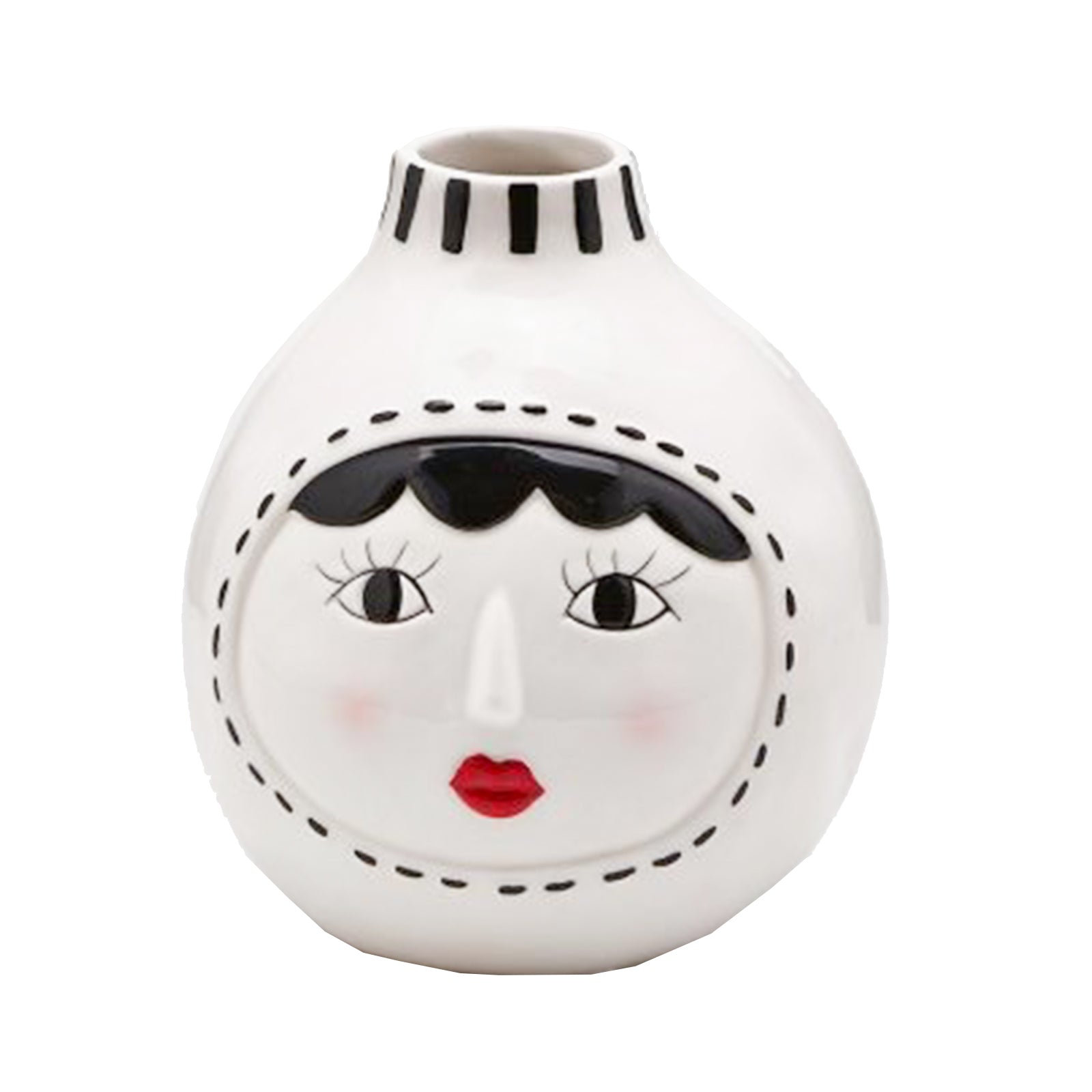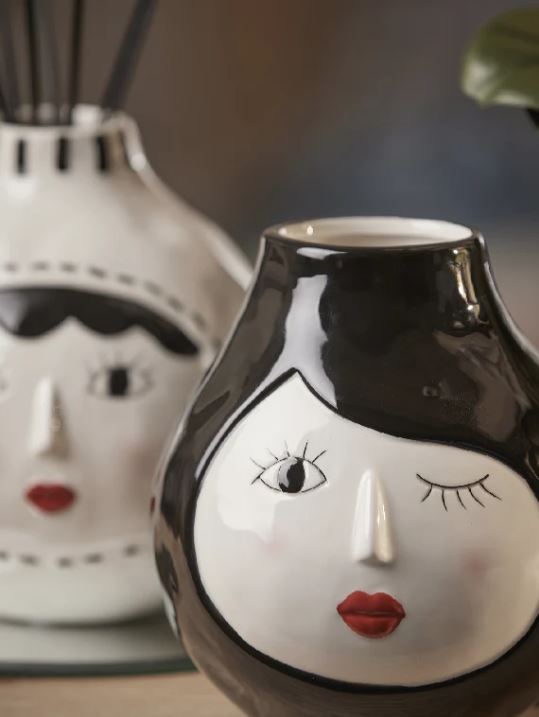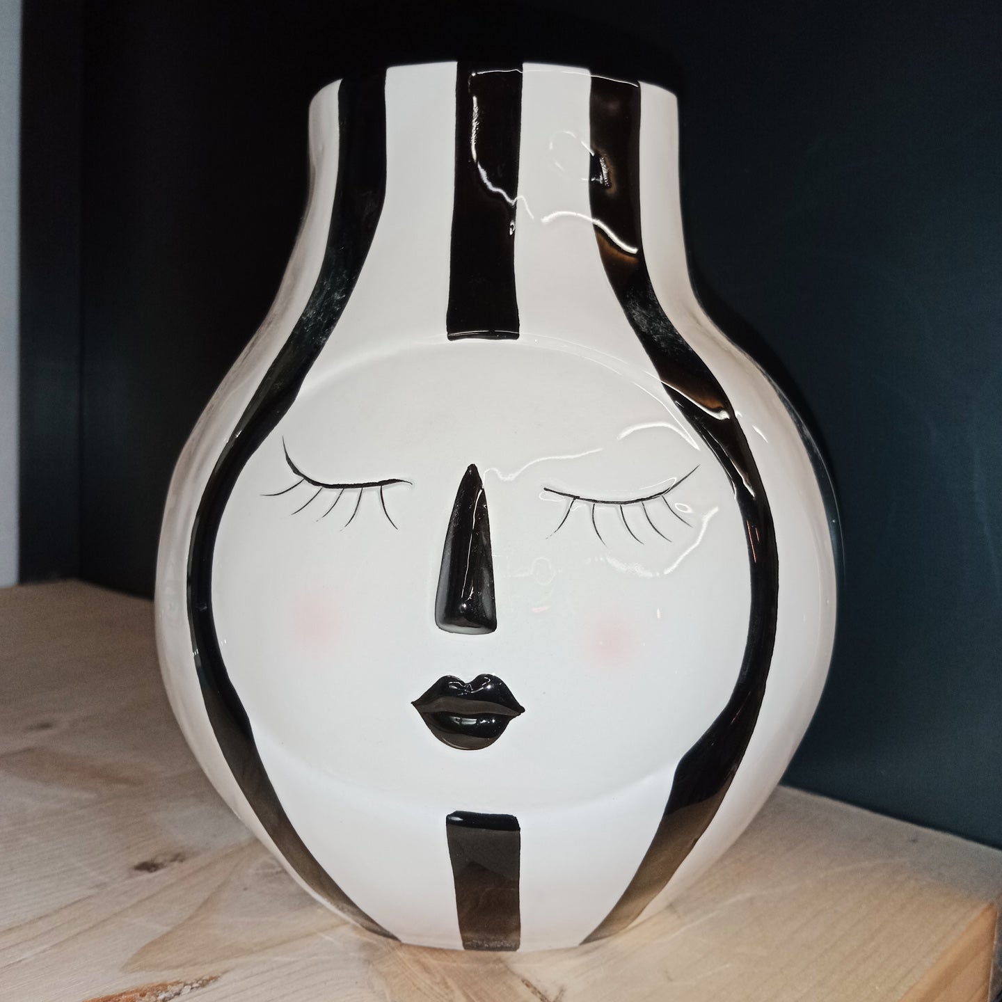 Vaso Faccia decorativa porta fiori o piante in ceramica volto donna h 19,4 cm