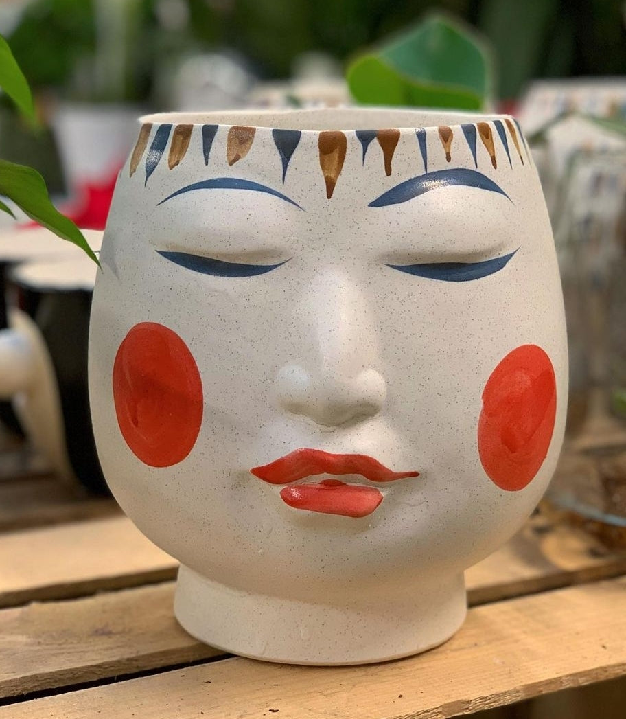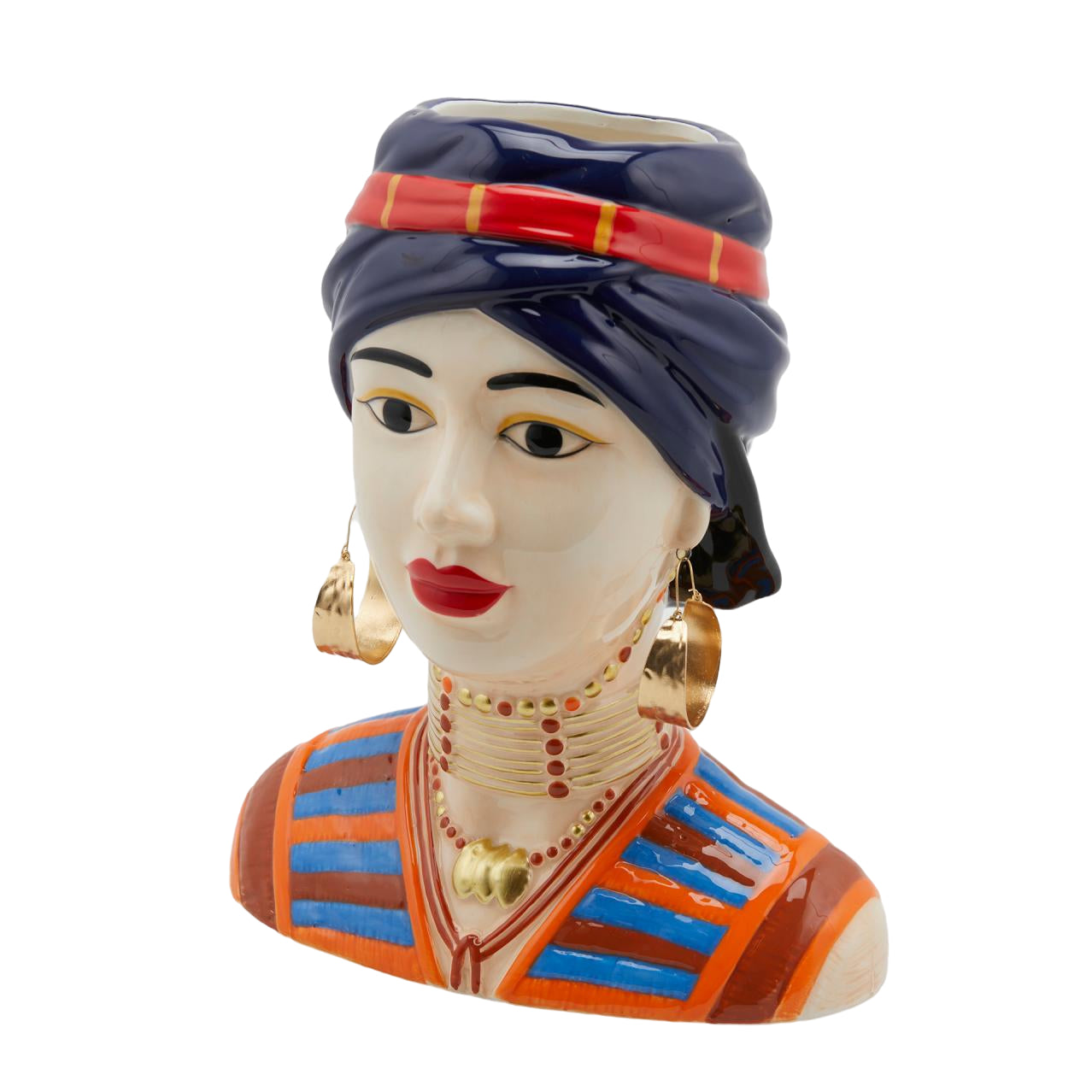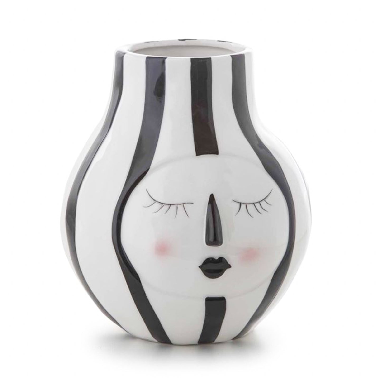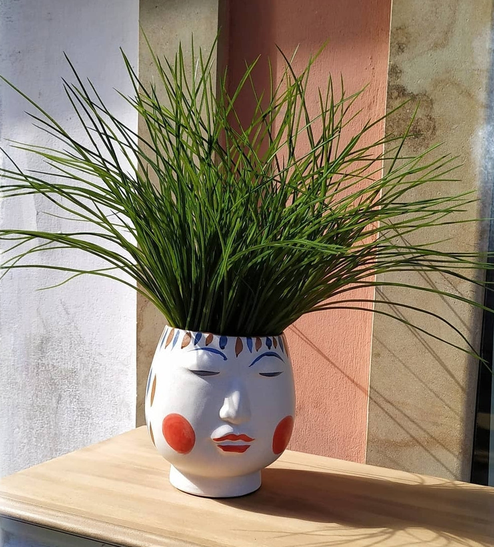 Vaso Faccia decorativa porta fiori o piante in ceramica volto donna h 19,4 cm